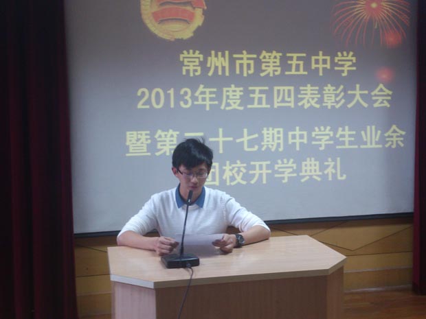 青年是充满激情,充满抱负的,青年总是要义无反顾地站在时代的潮头,肩负起民族振兴的大任。5月4日,我校100多位有着共同政治信仰、追求卓越的五中青年在信息楼三楼会议室,隆重举行常州市第五中学2013年度五四表彰大会暨第二十七期中学生课余团校开学典礼。