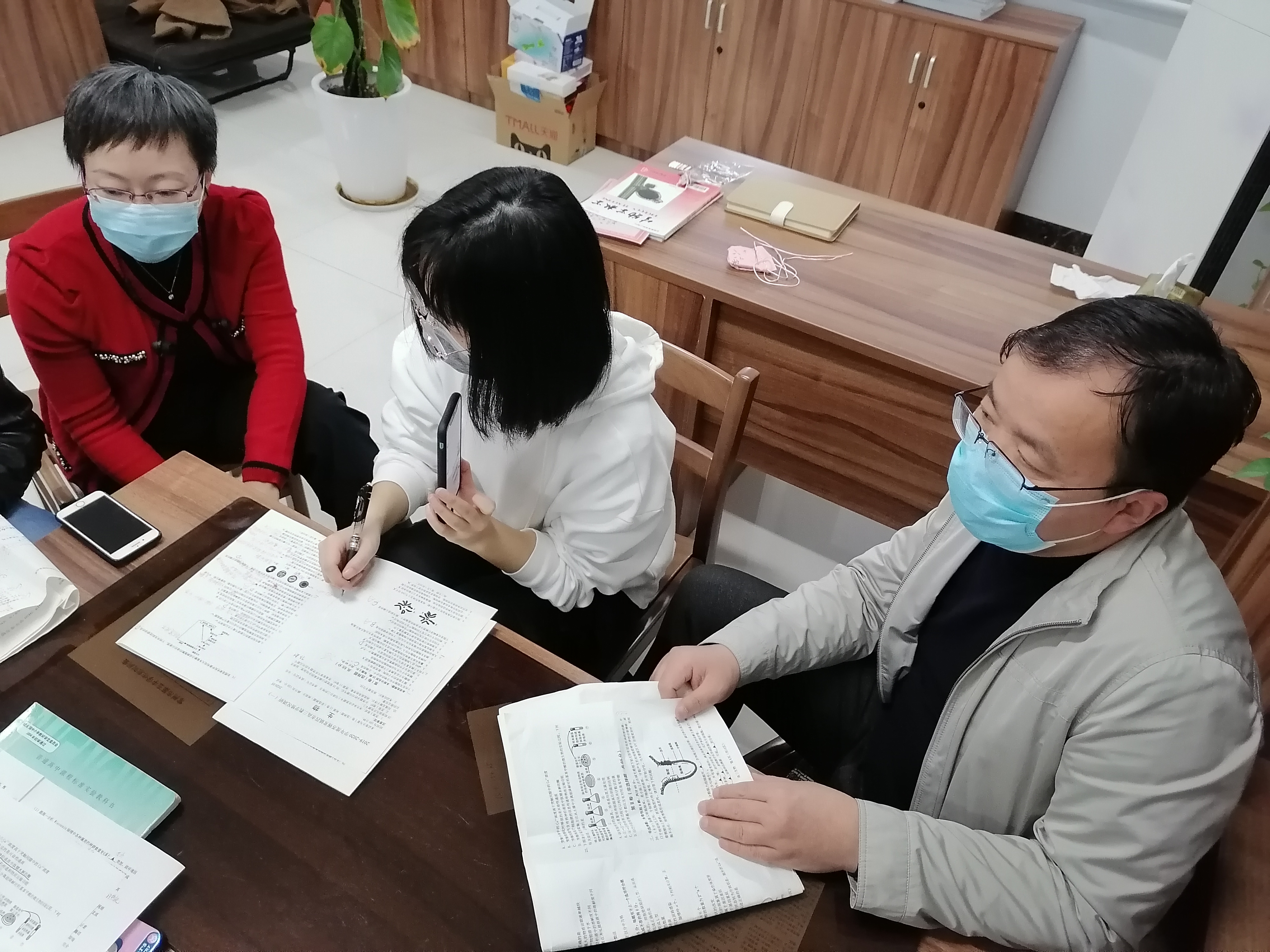 本次活动由李秀琴老师主讲,主题为“一模试卷研讨”。李老师首先向大家介绍了本次一模考试的得分情况及阅卷的标准,重点指出了几处的判卷争议和商讨过程。本次一模卷,整体难度较大,全市均分不高,我校最高分73分,很不容易。接着,两位年轻教师及预备教师提出了自己的疑问,李老师通过现场讲解及视屏通话的方式,一一分析解答,非常的认真和仔细。然后,年轻教师们谈了自己做一模卷的感受并总结自己的不足,主要表现在对知识点的不熟,还需要提升自身的专业素养,组内“师傅们”给予了一定的建议和鼓励。针对几处较难内容,组内老师上网查阅,相互商讨,纷纷表达了自己的看法,最后得到较为一致的认识。