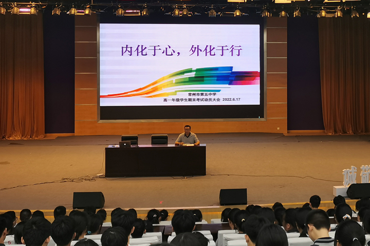 荷风送香气,竹露滴清响。在这个充满阳光、希望与热情的季节,同学们的高一学年即将画上圆满的句号。为进一步帮助高一学生在炎热中保持清凉、在迷茫中保持清醒、在疲乏中保持努力,6月17日下午,高一年级在知音剧场召开以“内化于心 外化于行”为主题的期末考试动员大会。本次大会由高一年级主任吴雪主持,姜刚副校长出席了本次活动。