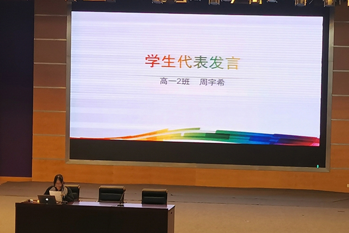 本次会议共分为四个环节。首先由高一(2)班周宇希同学作为学生代表上台分享了自己的学习规划和学习经验.