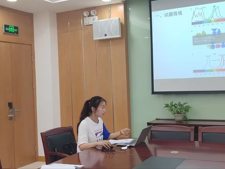整个活动分三个环节,首先六位青年教师按抽签顺序轮流讲题,从试题情境、必备知识、关键能力、学科素养、解题思路和教学建议等 方面对自己所命试题进行阐述。然后,丁静老师依次对各青年教师的命题提出指导与建议,并对涉及的学科知识和命题语言展开讨论,各青年教师结合建议对试题梳理修改框架。最后沈默然副校长对本次比赛提出评价与建议,并对各位青年教师提出成长期望。