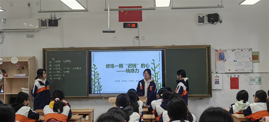 高中生处在三观建立的过程中,容易收到环境的影响。同时学生获取信息的来源更多,更方便表达自己的言论。在此过程中容易发生学生之间的冲突。如何缓解冲突,增加钝感力,将注意力集中在自己身上。邓佳琳、孙梓瑜和梁铭言三位同学给我们带来《钝感力》的晨会。