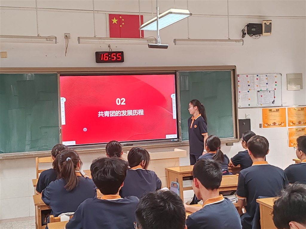 蒋殷品在班会上分享共青团的发展历史