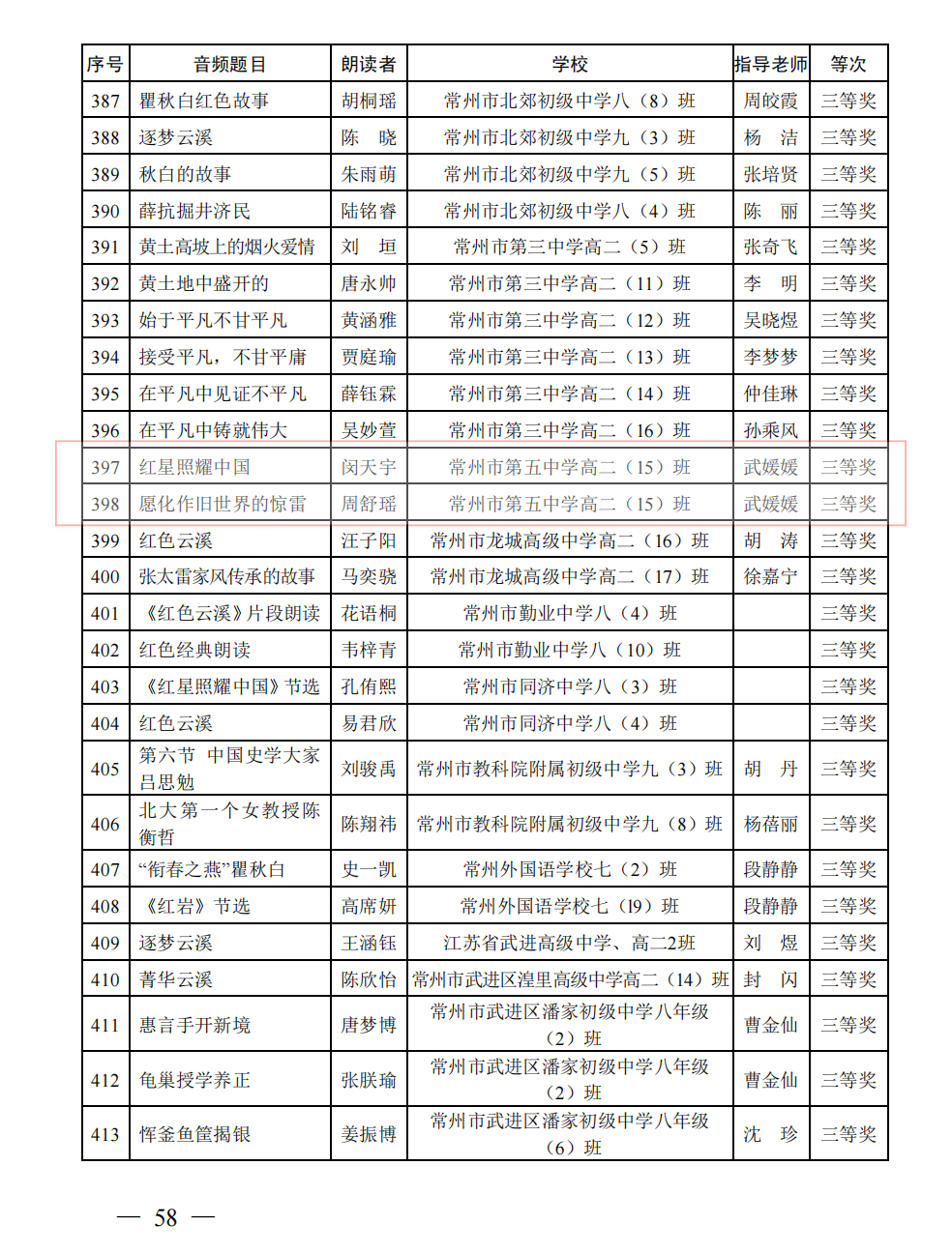 顾佳、王睿、闵天宇、周舒瑶分获一等奖、三等奖