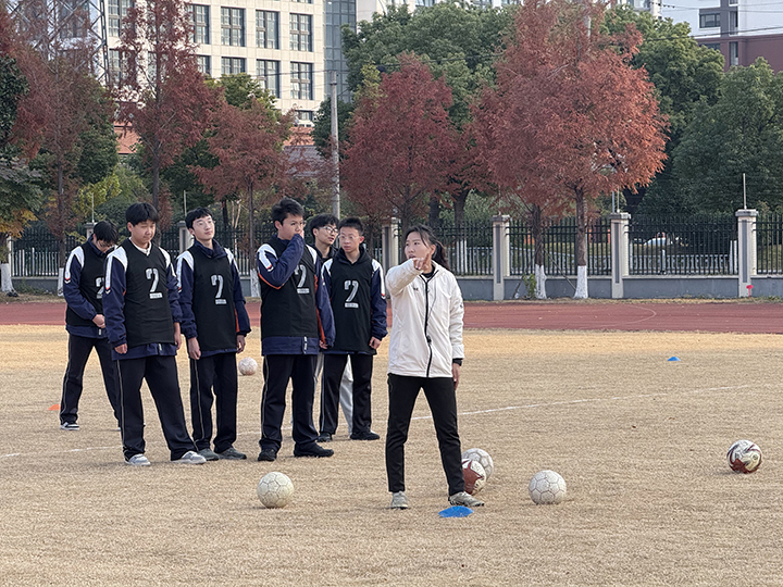 李丹凤和张宇成老师的《足球:撞墙式二过一战术应用》以及李翔老师的《健美操:素质拓展套路组合一》在教学设计与重难点突破上均展现出鲜明亮点与扎实教学功底。足球课以基础传接球复习为铺垫,逐步过渡到战术练习与半实战对抗,健美操课程通过分层引导、小组协作推进动作学习,衔接自然且针对性强,为技能掌握搭建了有效支架。健美操课聚焦“音乐伴奏下完成髋位托举”,依托精准示范与靶向练习实现突破,达成了技能和素养的双重教学目标。