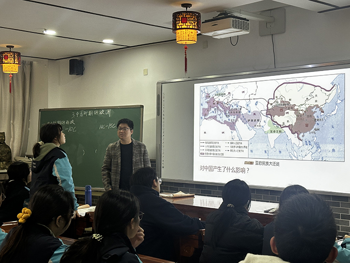 杨添翼与魏金龙老师围绕《两次鸦片战争》开展同题异构教学。杨老师以礼仪之争、起因之争、利益之争、文明之争为线索,层层深入,在叙事中引导学生思考战争背后的文明冲突,课堂富有故事性与思辨性;魏老师则以中英战前武器对比为切入点,打破思维定式,激发学生探究兴趣,逐步展开对战争背景与影响的剖析,教学思路清晰、层次分明。毛园老师与江苏省华罗庚中学汪美良老师就《中古时期的欧洲》进行同课异构展示。毛园老师从经济发展视角出发,引导学生探究经济基础对欧洲政治与文化形态的影响,注重史料实证与唯物史观的融合;汪美良老师则以文化变迁为主线,通过分析中古前后期文化的演变,反推政治与经济领域的深层变动,并在东西欧比较中凸显文明发展的多元特点,课堂构思巧妙,前后呼应。
