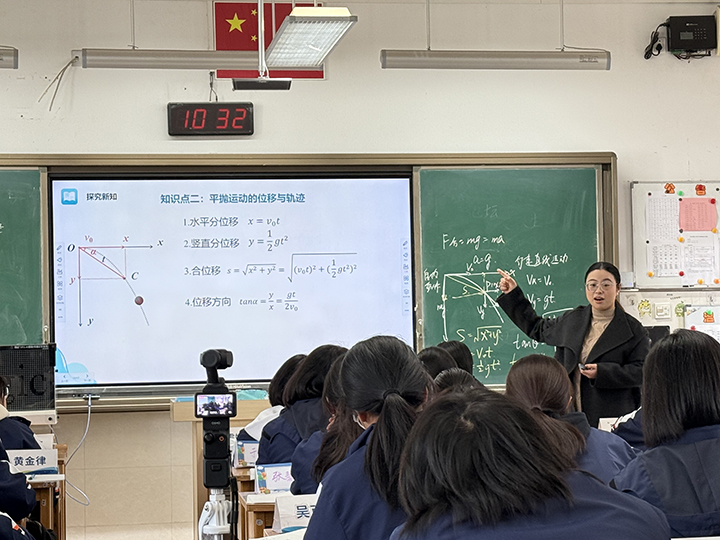 我校李鑫老师执教高三复习课《光》,以情境导入激发探究,融合实验演示与数字化分析,体现“做中学”理念。在《抛体运动的规律》教学中,陈梦馨老师以学生投篮为真实情境引入,借助Tracker软件动态分析轨迹,从平抛到斜抛层层深入,直观呈现物理规律;常州市教科院附属高级中学王佳宁老师注重模型构建与科学思维渗透,展现跨校教研的创新活力。三位教师均立足新课标,尝试借助信息技术辅助教学,促进物理观念与科学思维的深度融合,为“融美·自觉”课堂提供了生动案例。