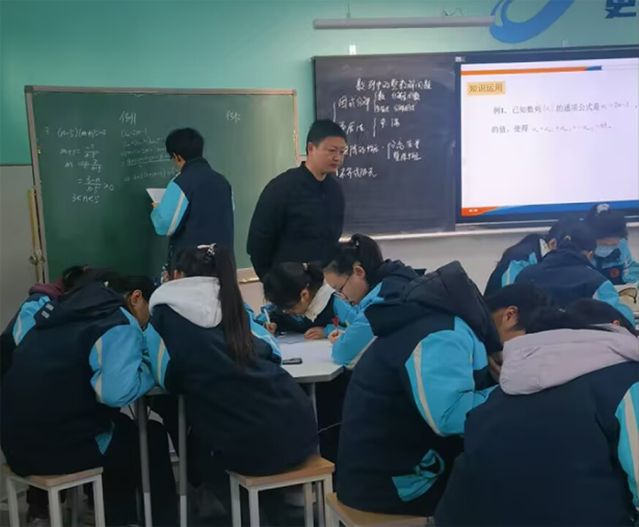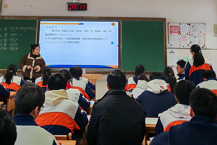 陈向老师以《数列中的整数解问题》为课题,从学生日常作业切入,精选典型例题,引导学生归纳该类问题的常用解法。整节课设计层次分明,由浅入深,逐步推进,有效促进了学生思维能力的提升。陈希老师以《瞬时变化率——导数》为课题,结合机动车超速情境,通过位移与时间函数问题链,引导学生由平均速度趋近值感知瞬时速度本质,并用例题、变式和练习巩固实现知识认知闭环。赵亚坤老师和毛莹老师以《任意角》为题开展同题异构,赵亚坤老师侧重章首课,疏导本章总体脉络的同时展开第一节的教学,循序善诱,启发学生,培养学生自主探究能力;毛莹老师则侧重新授课,快速切入主干知识,难度层层递进,培养学生的数形结合能力。两节课殊途同归,均取得良好的教学效果。