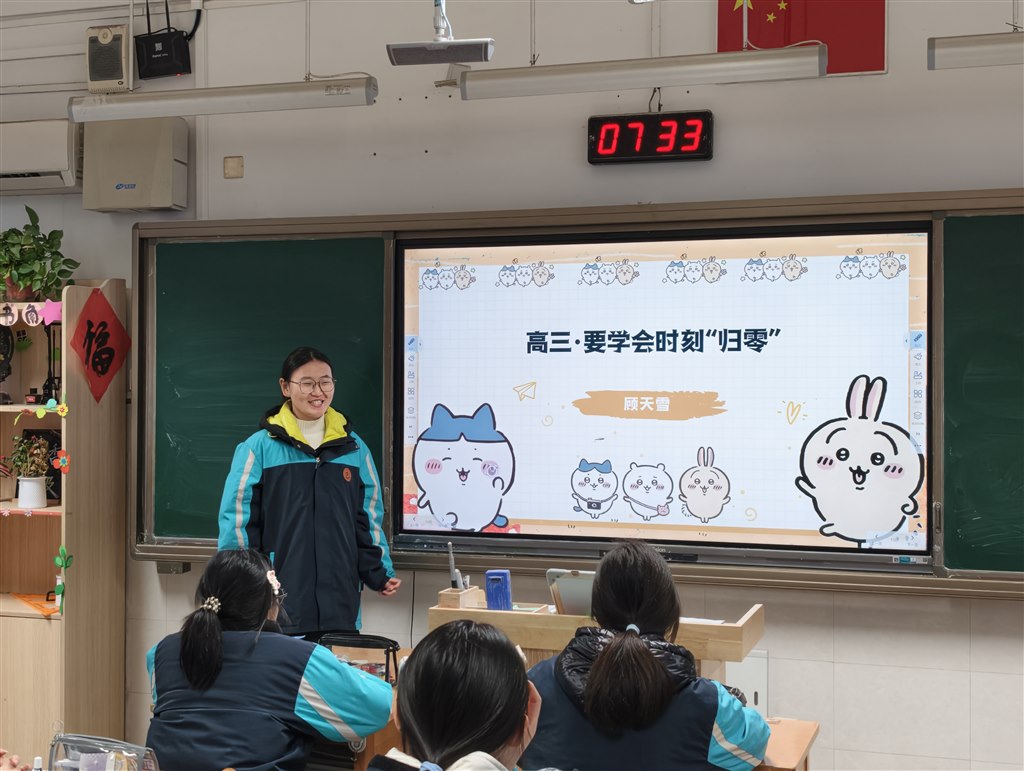 顾天雪开篇以“空杯”作喻:“一个始终装满水的杯子,无法再容纳新的甘泉。高三也是如此,无论过往是辉煌还是遗憾,若在心里装得太满,就难以为未来的成长腾出空间。”她强调,“归零”并非否定过去的努力,而是主动卸下心理包袱,以轻盈、开放的心态,迎接每一个崭新的学习日。