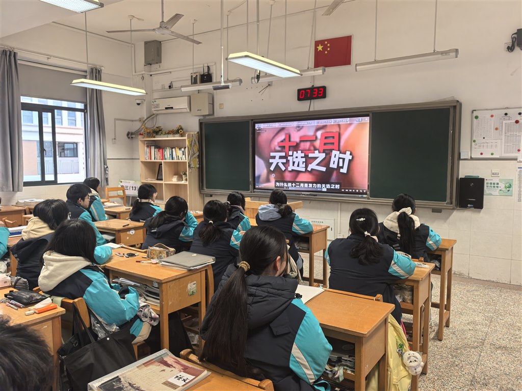 本周一的晨会聚焦高三12月疲惫期,给学生们播放了12月之后逆袭学习的视频,明确每一阶段的主要任务,同步开展心理调试,助力学子高效备考。