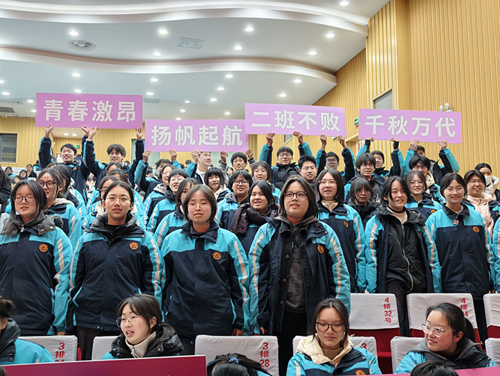 学生动员会上,暖意涌动、士气高涨。班主任教师代表高三(12)班吴若凡,以真诚的话语、务实的建议,为学子们加油鼓劲、答疑解惑,传递备考信心与力量。各班学子齐声喊出铮铮口号,那一声声嘹亮的呐喊,是青春的激昂,是必胜的信念,更是全体高三学子凝心聚力、共赴征程的庄严誓言。赵军寄语全体学子,指出:“信心是冲刺的压舱石,策略是冲刺的导航仪,心态是冲刺的稳定器。”他叮嘱学子们,备考中要回归基础、颗粒归仓,精准发力、补齐短板,规范答题、精益求精,同时学会调节情绪、保持平和心态,以最佳状态迎战一模、奋勇争先。